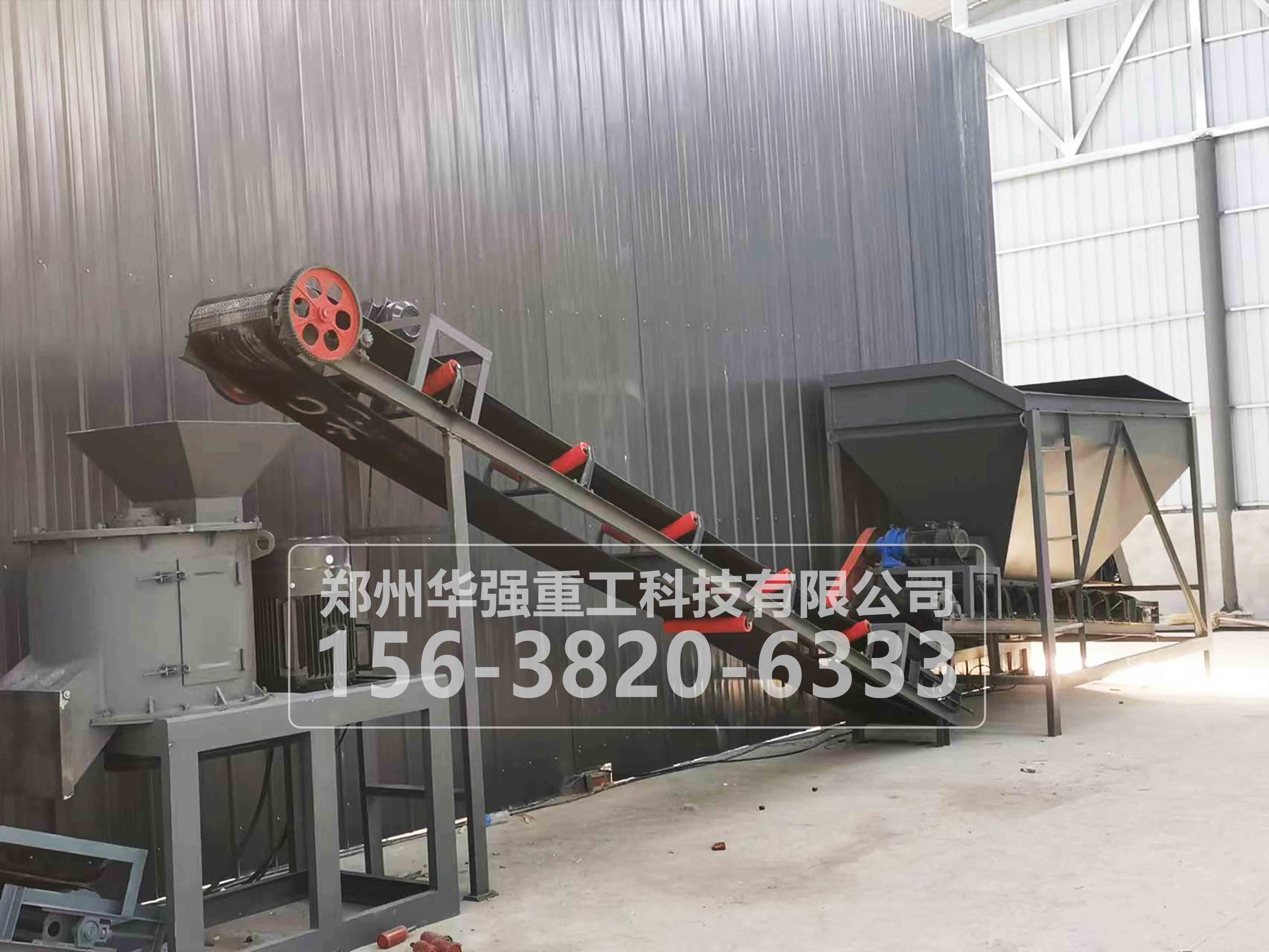 2、鏟車喂料機(jī),該機(jī)功能是儲存發(fā)酵好的物料,并把物料均勻定量的輸送到下一個環(huán)節(jié)。該機(jī)配置變頻器,可以調(diào)整皮帶機(jī)輸送速度,料倉內(nèi)部加有防砸網(wǎng),可使物料緩慢灑落到料倉內(nèi),可以把大塊物料分離出來。料倉的中下部位配有防堵攪拌裝置,杜絕堵料。