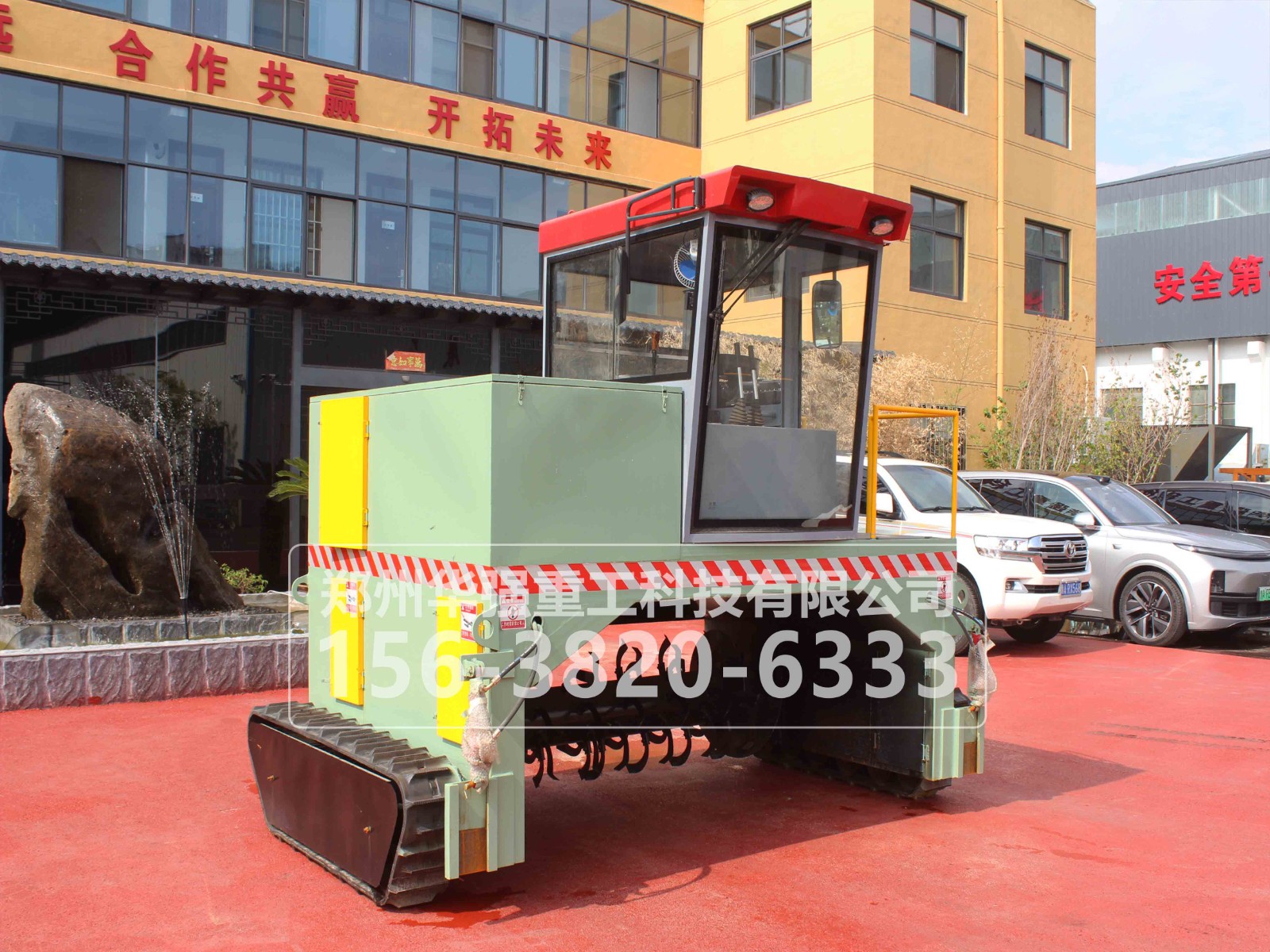 履帶式翻堆機(jī)該機(jī)采用履帶式行走式,由一人操控,.行走時(shí)整車(chē)騎跨在條形堆上,車(chē)過(guò)后形成新的條形堆.該機(jī)可多種場(chǎng)合作業(yè).在物料發(fā)酵后期還具有破碎功能.整體結(jié)構(gòu)剛性好,性能安全可靠.