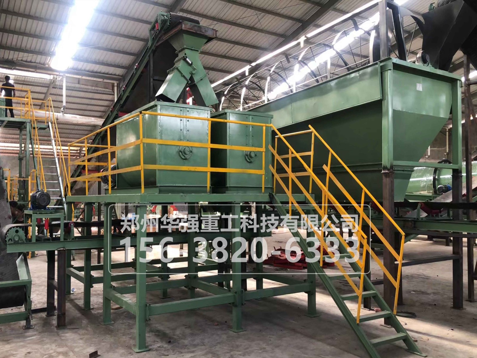 6、輸送至成品篩分機(jī),大顆粒經(jīng)粉碎機(jī)粉碎后返回至轉(zhuǎn)鼓造粒機(jī)中繼續(xù)參與成球;